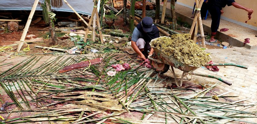 Aftermath of a sacrifice. The paved road leading towards the funeral ground was running red with blood.