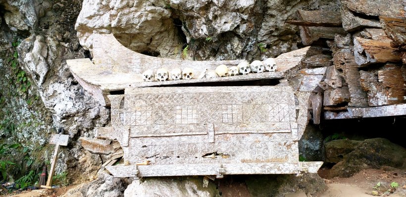 People leave offerings for the deceased. Even though Indonesia is a Muslim country, the Torajans are Christian animists.