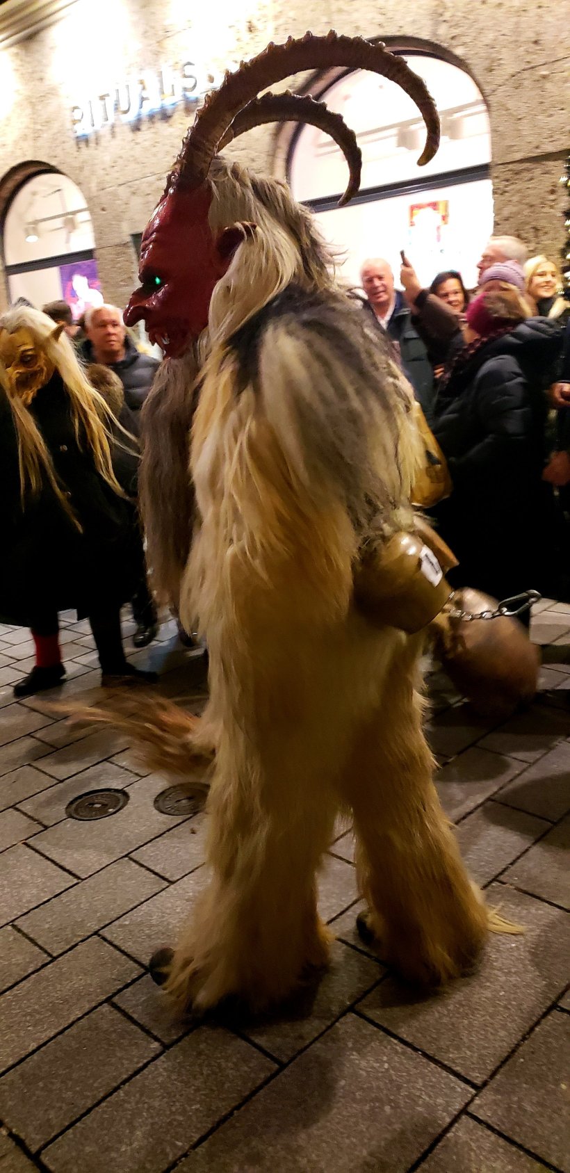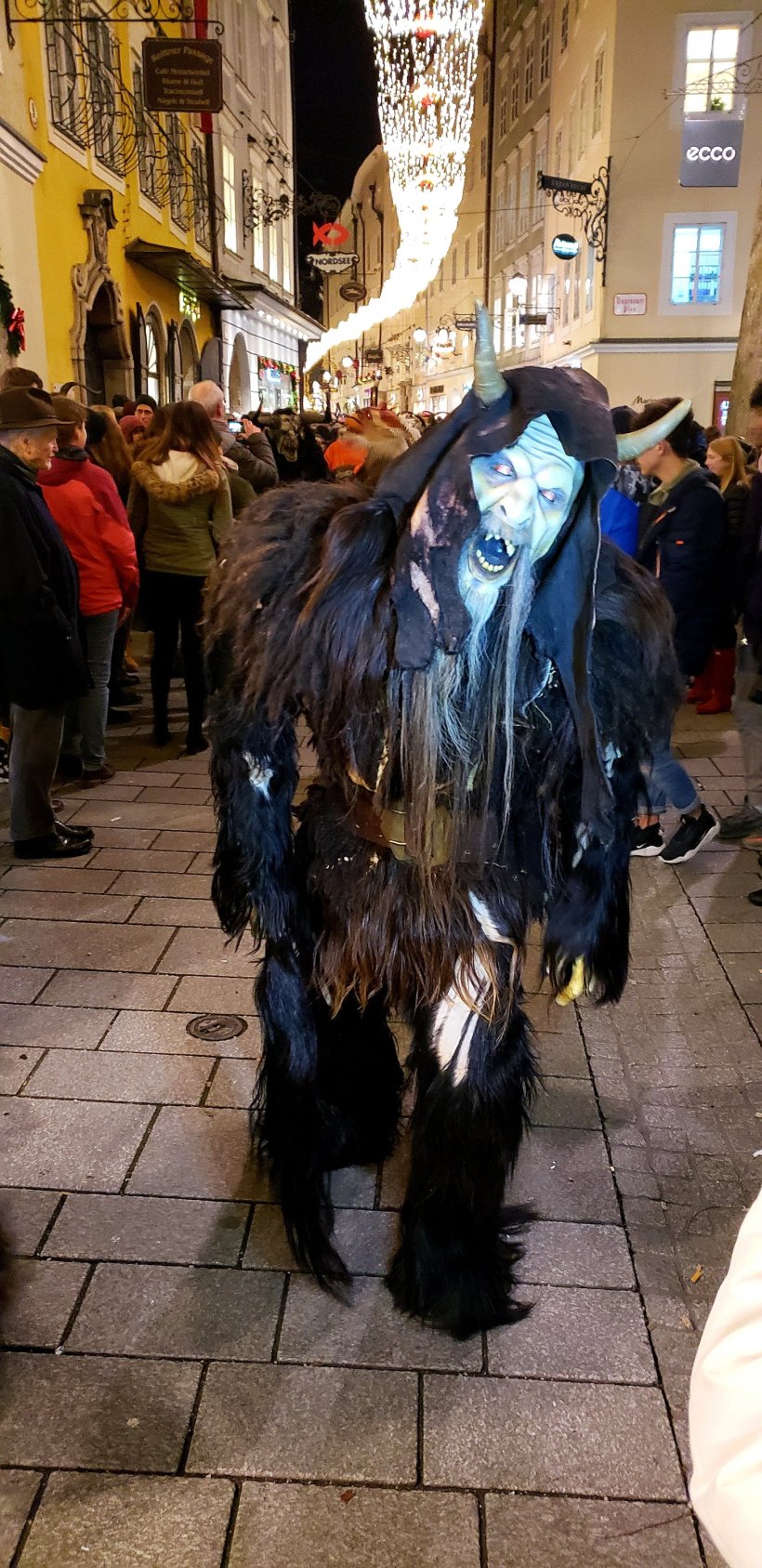 And, the best part is, once a year they have a FESTIVAL for him! Local community members in towns across the region get dressed up as Krampus, then dash through the streets in the annual Krampuslauf, whipping passerbys and making lots of noise, scaring children and small animals. Traditionally, the Krampuslauf is held on the evening of December 5. This year, I celebrated it in Salzburg, Austria!