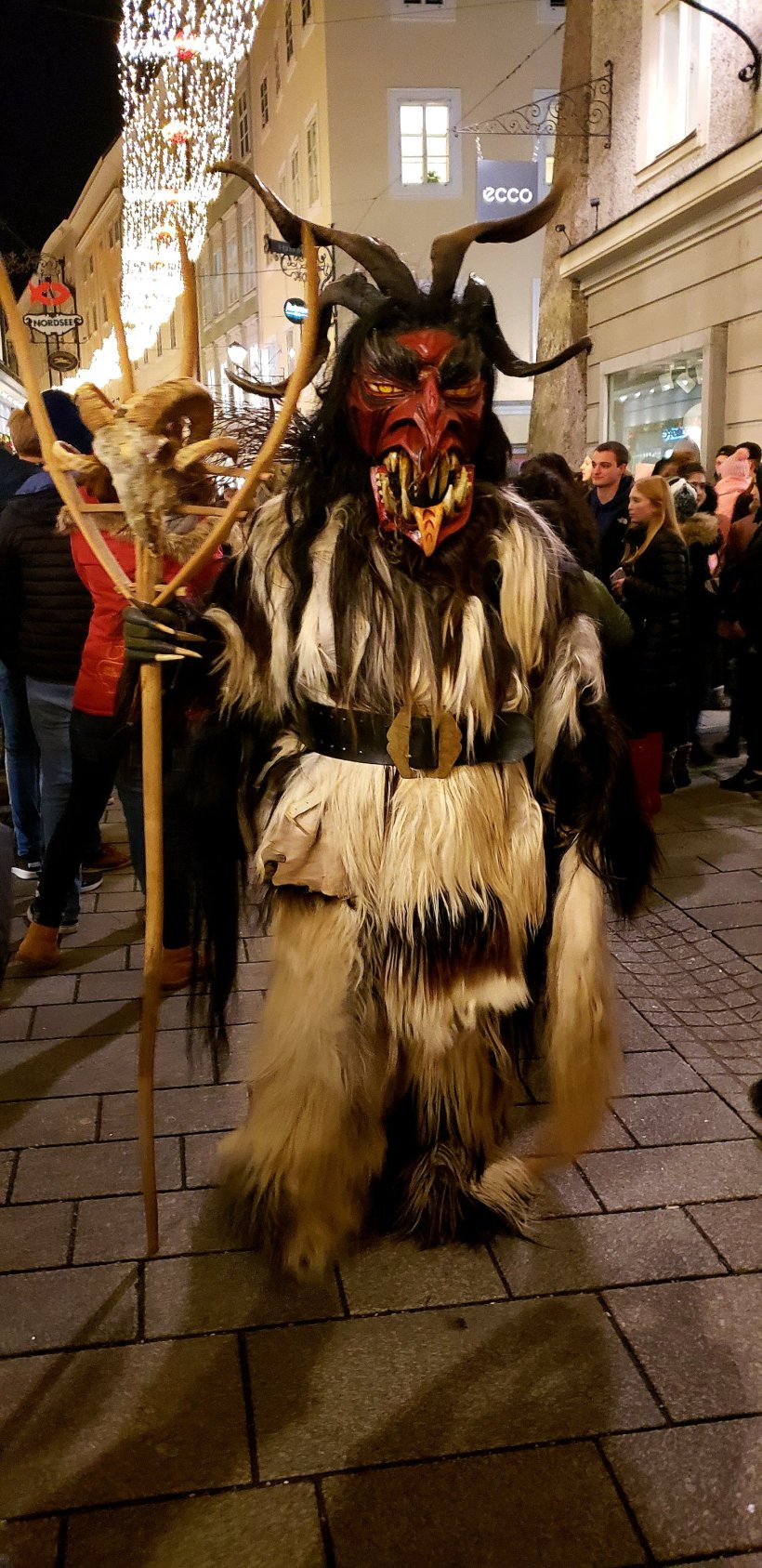 Many Krampuses have black soot on their fingers that leave marks wherever they touch (as pictured on my face above). Maybe this is to mark which “children” are bad and must be whipped? And let me just say, those whippings HURT!