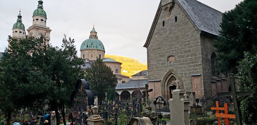 Outside of Krampuslauf, Salzburg is beautiful. There’s a lovely walled church with cemetery: