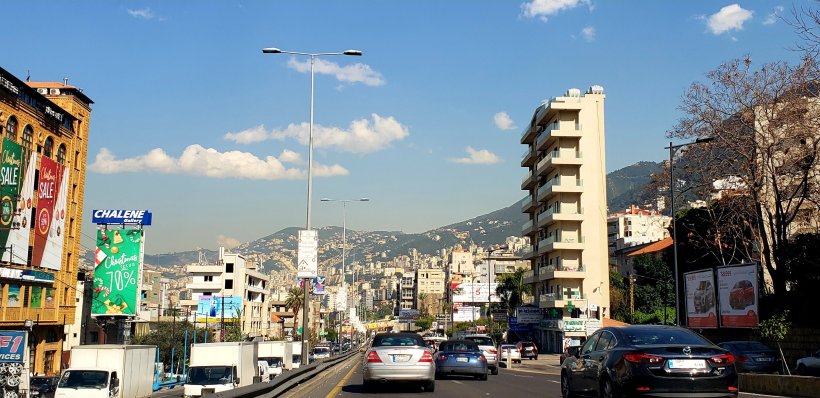 Headed north out of Beirut, Mount Lebanon in the distance: