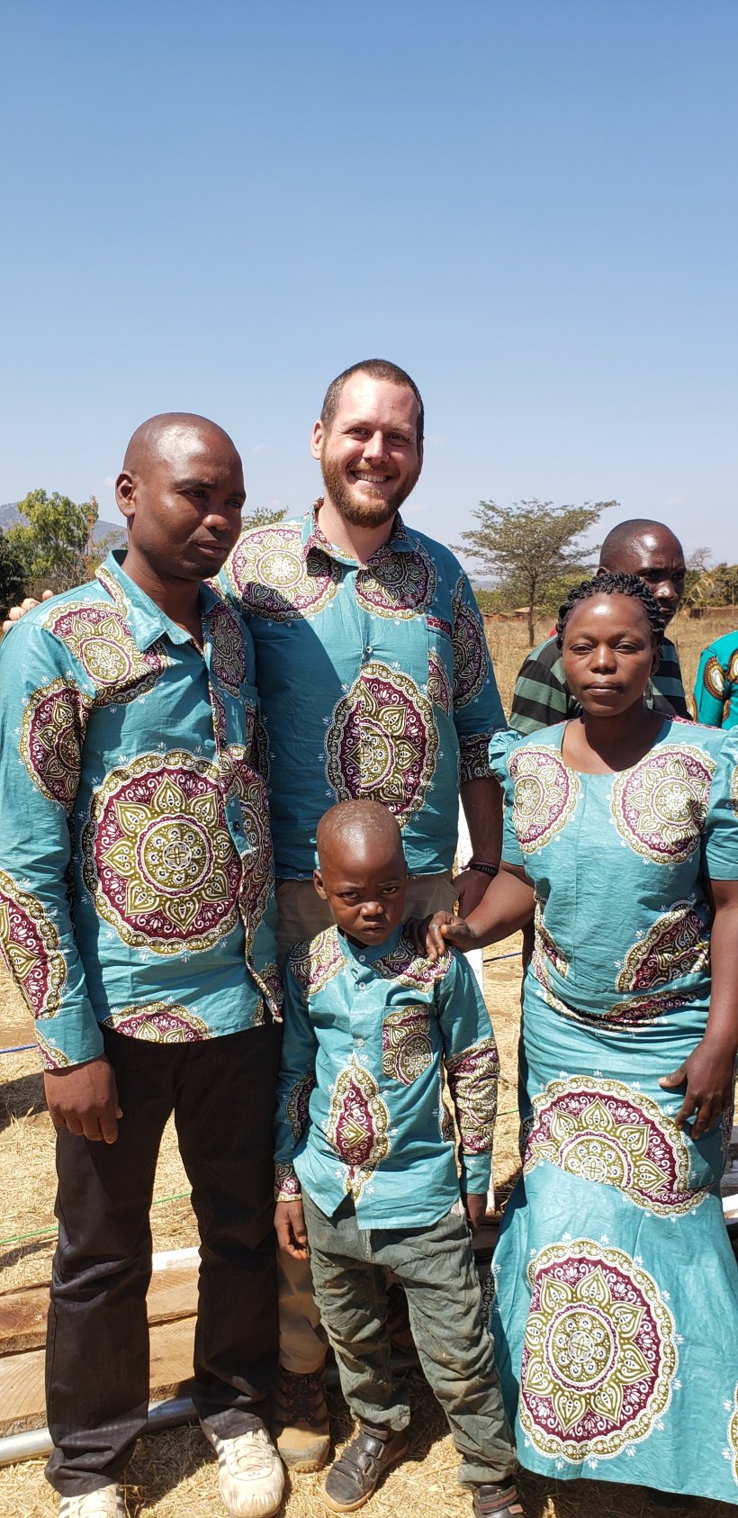 Me with my host family. As a parting gift, I had matching chitenje outfits made for us all: