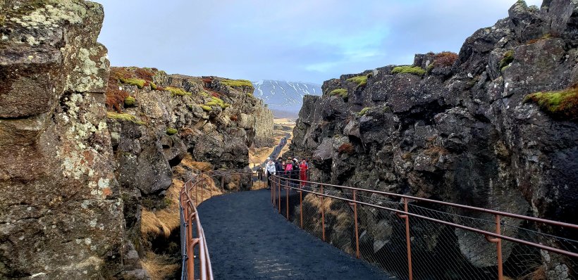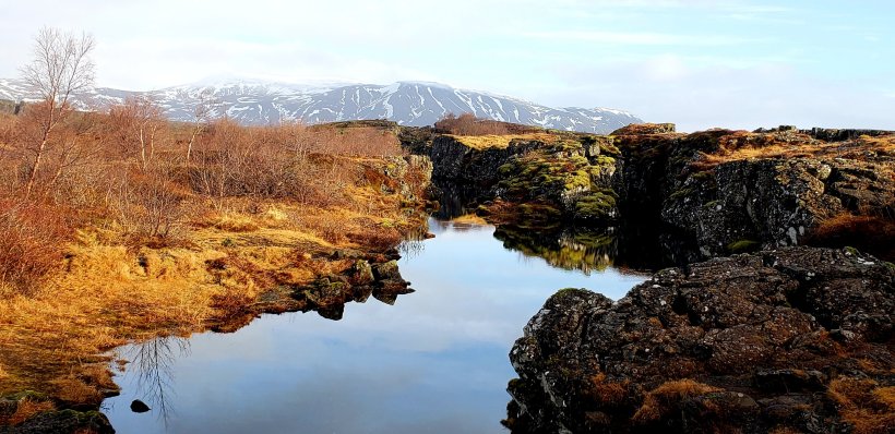 My first destination was Þingvellir National Park. This area was the meeting place for the heads of the various clans in Iceland, over 1000 years ago. It also has geological significance, being the point where the North American tectonic plate meets the Eurasian plate. There’s even a lake where you can go scuba diving between the plates and touch them both at the same time (bucket list item for me, as I hadn’t yet received my requisite Advanced Scuba Diving Certificate when I was there).
