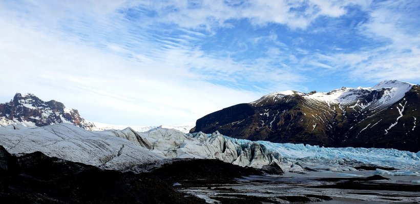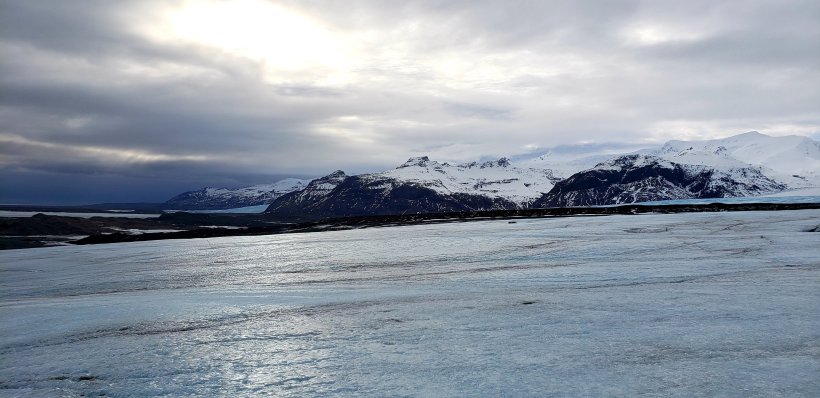 Outside of the glacier with the ice caves was a lake that had mostly frozen over, and the result was breathtaking…..