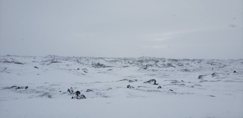 Later, as I started to reach the north side of the island, I hit true winter weather…. And hit it hard. A couple of times, my car got stuck in the snow and I had to reevaluate my destinations. It was like driving through Hel, the frozen underworld of Norse mythology. I’ve been to a lot of places, but I’ve never seen anything like this: